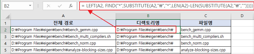 만일 경로에 "\" 문자가 하나도 없다면 이 함수식은 에러를 발생시킨다.