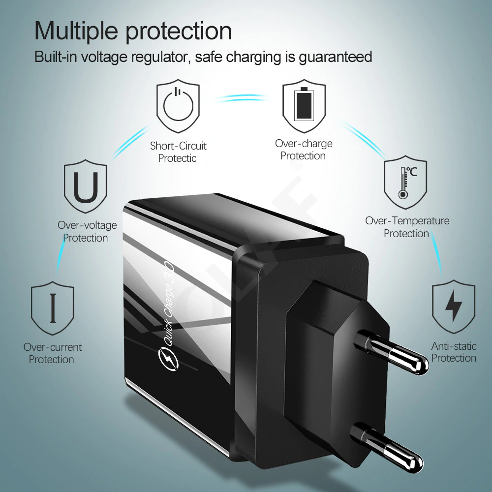 2.89US $ 42% OFF|48W Quick Charger 3.0 USB Charger for Samsung A50 A30 iPhone 7 8 Xiaomi mi9 Tablet QC 3.0 Fast Wall Charger US