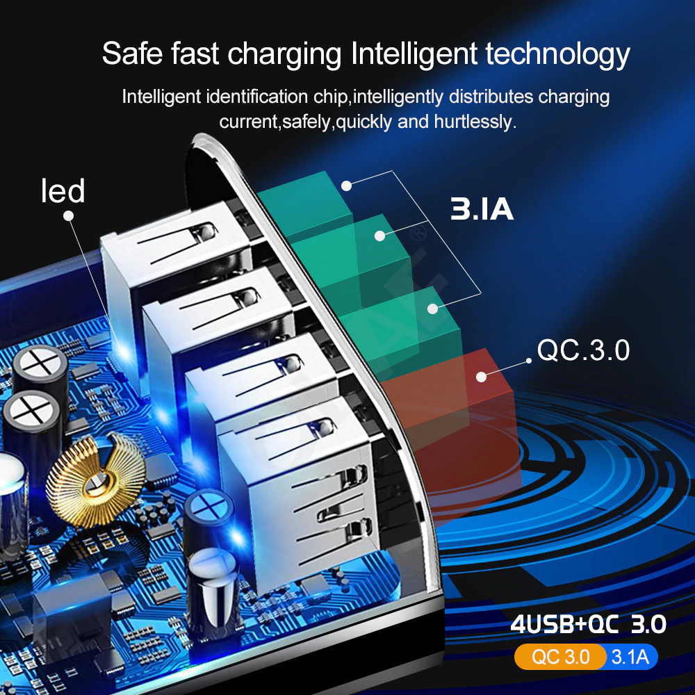 2. 4 USB 포트 (빠른 충전 3.0 3 usb 포트 5V/3.1 최대), 4 장치를 동시에 충전.