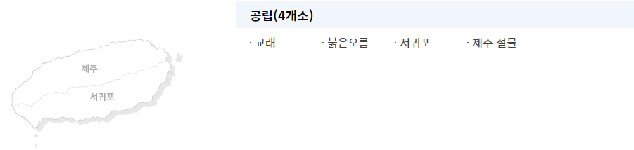 강원(28개소), 인천/경기(19개소), 충복(21개소), 대구/경북(28개소), 대전/충남(16개소), 전북(12개소), 부산/경남(18개소), 전남(16개소), 제주(4개소)를 운영하고 있다.
