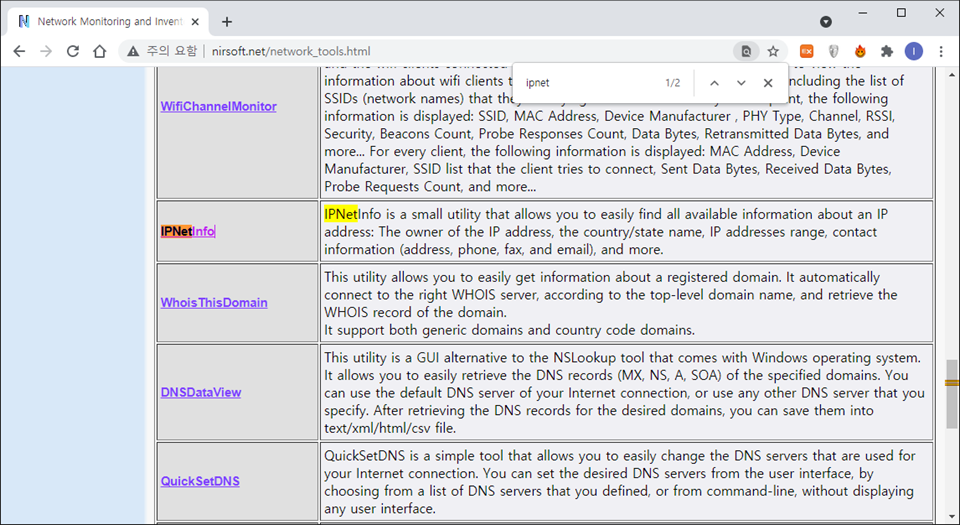 ○ 프로그램 다운로드: nirsoft/net > All Utilities 선택, ipnetinfo 검색
