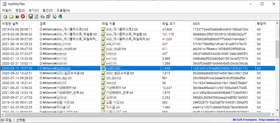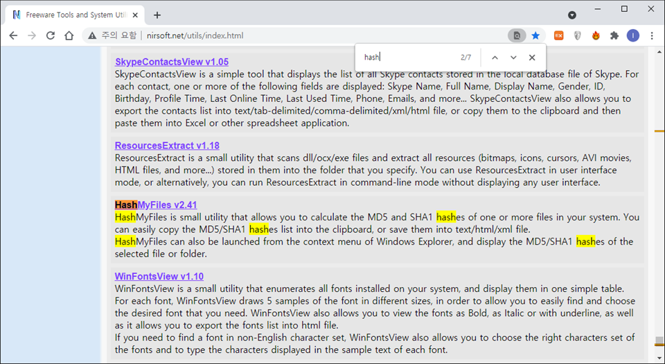 ○ 프로그램 다운로드: nirsoft.net > All Utilities 선택 > HashMyfiles 검색