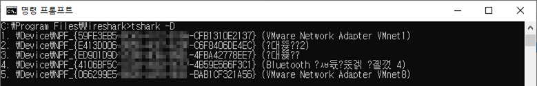 ○ 네트워크 카드 목록 : tshark -D
