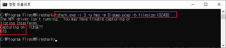 tshark.exe -i 3 -u hms -w D:dump.pcap -b filesize:102400'IT속으로' 카테고리의 다른 글