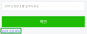 3) OTP 인증번호로도 로그인에 실패하는 경우, OTP 인증번호 입력란 아래의 ‘2단계 인증 해제’를 클릭