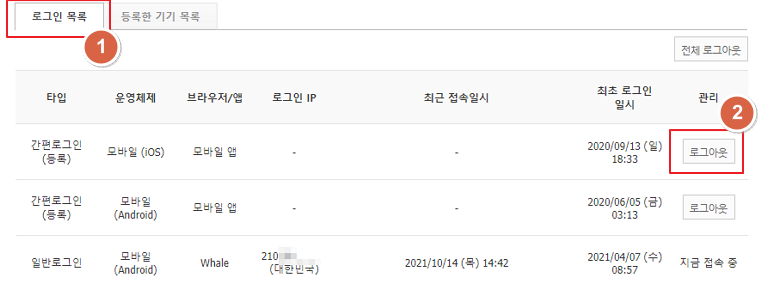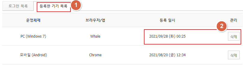 - 로그인을 허용한 기기목록 입니다.