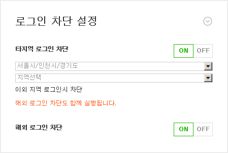타지역 로그인 차단 기능을 설정하는 경우 해외 로그인 차단이 함께 설정됩니다.