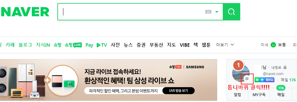 PC버전 브라우져에서는 로그인 정보 나온곳의 톱니모양 아이콘을 클릭하시면 됩니다.