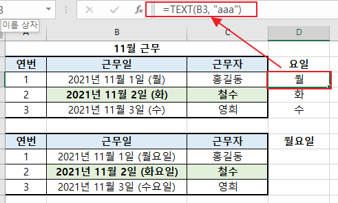 - 셀 서식에서 요일을 표시하는 방법입니다.