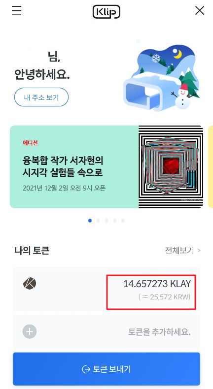 - 카카오톡 Klip (클레이 지갑)에서 클레이가 정상적으로 입금된 것이 확인됩니다.