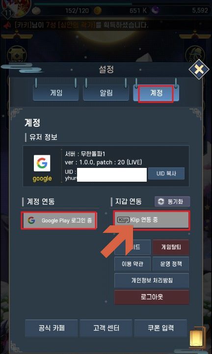 3. 설정에서 구글 계정과 KLIP 지갑 연동