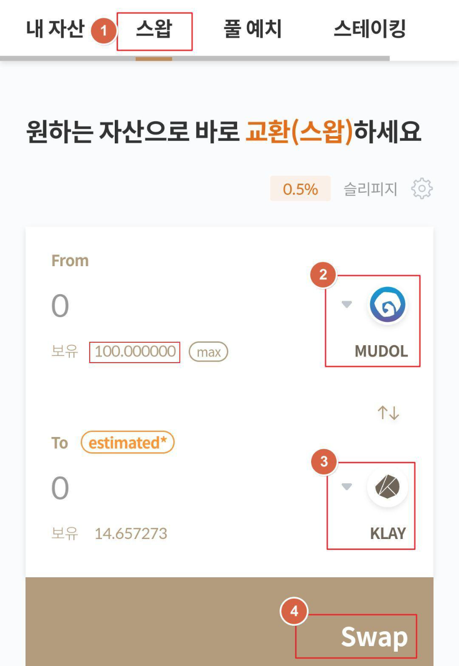 - 무돌 토큰이 상장된곳을 찾아야 하는데, 현재 클레이튼 스왑에서 교환이 가능합니다.