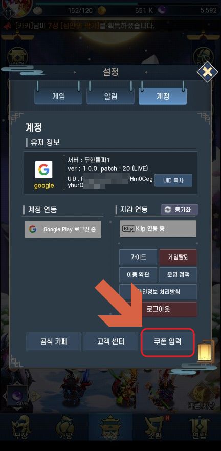 무한돌파삼국지 리버스 쿠폰 등록 방법