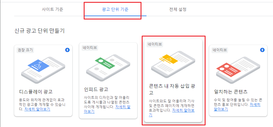 광고 > 광고 단위 기준 > 신규 광고 단위 만들기