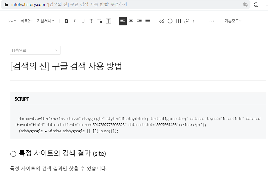 티스토리 게시글을 쓰다가 게시글이 길 경우에 중간광고를 넣어야 겠다고 생각이 들때,