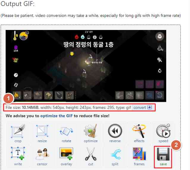 근데, 다운받을 움짤 영상이 업로드한 영상 사이즈와 별 차이가 없습니다. ㅠ.ㅠ