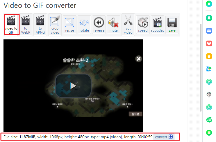 이후 "Covert to Gif" 버튼을 클릭하면 끝입니다.