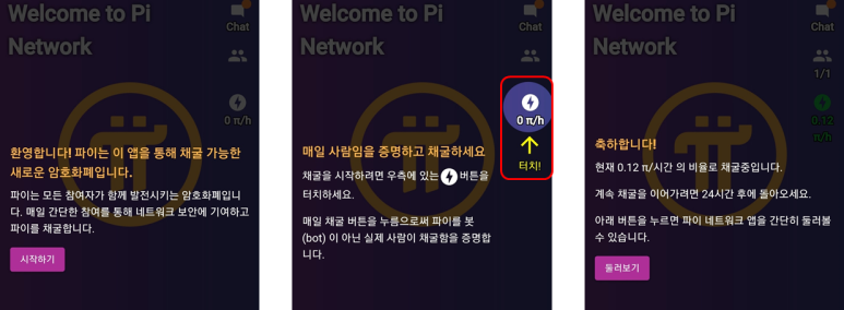 - 24시간에 한번씩 채굴 버튼을 누르면 채굴이 이루어진다. 휴대폰을 꺼놔도 채굴이 되며, 채굴이 휴대전화의 성능에 영향을 미치지 않는다. 그렇기에 사기다.