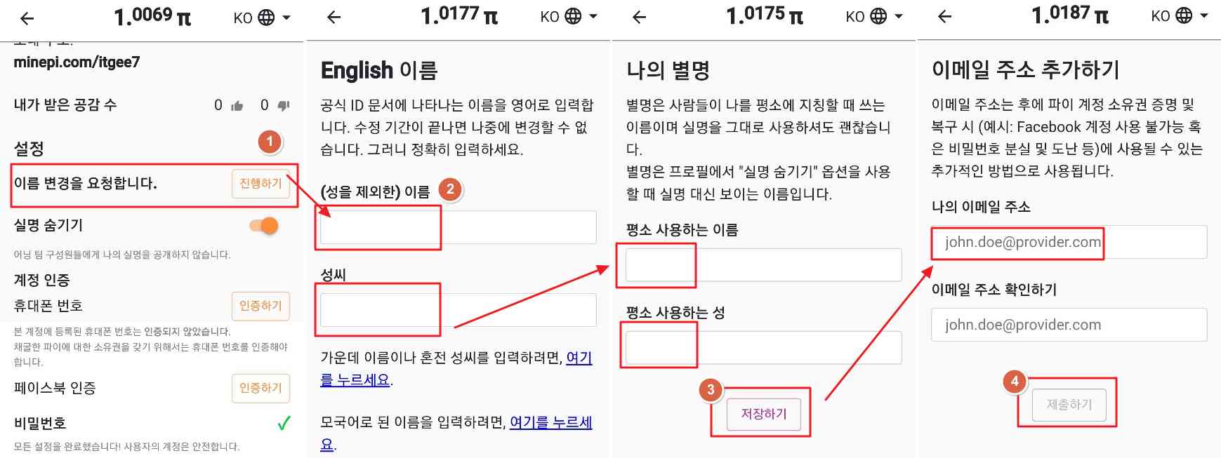 파이 코인에서는 이름 설정이 중요하다고 합니다. 잘못하면 나중에 채굴한 코인을 사용못할 수도 있습니다.