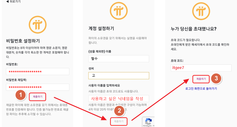 3. 비밀번호, 계정 설정, 초대코드 입력하기