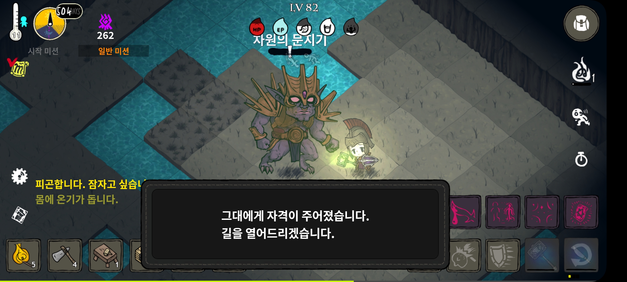 - 기온 : 던전 내부는 덥기 때문에 차가운 물약이나 체온을 낮출 수 있는 장비가 필요함.