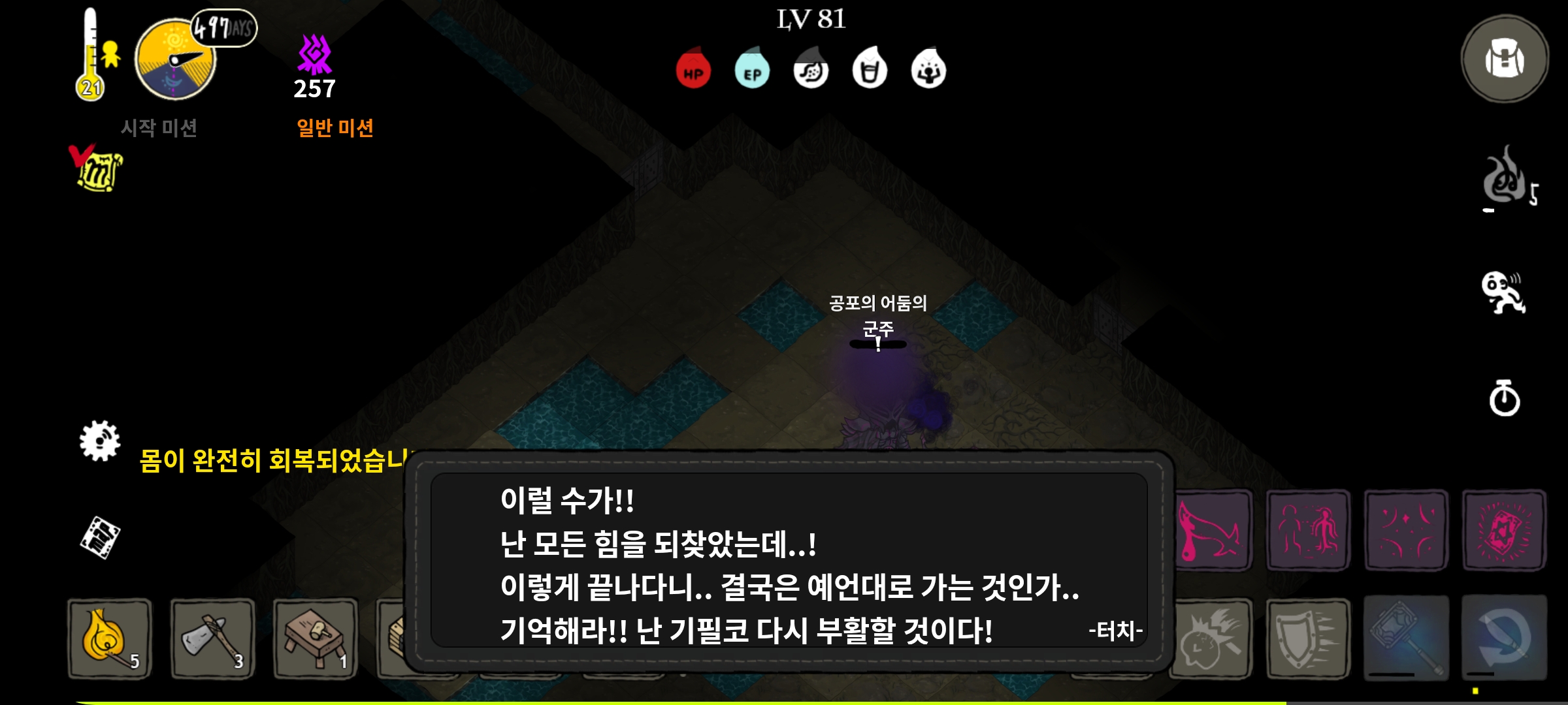 ※ 어둠의 군주의 광역스킬(불완전한 어둠)을 피하기 위해서는 반드시 순간이동 스킬이 있어야 합니다.