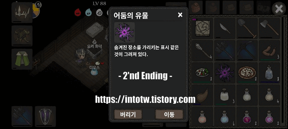 - 준비물: 어둠의유물조각을 모아 어둠의유물 필요함