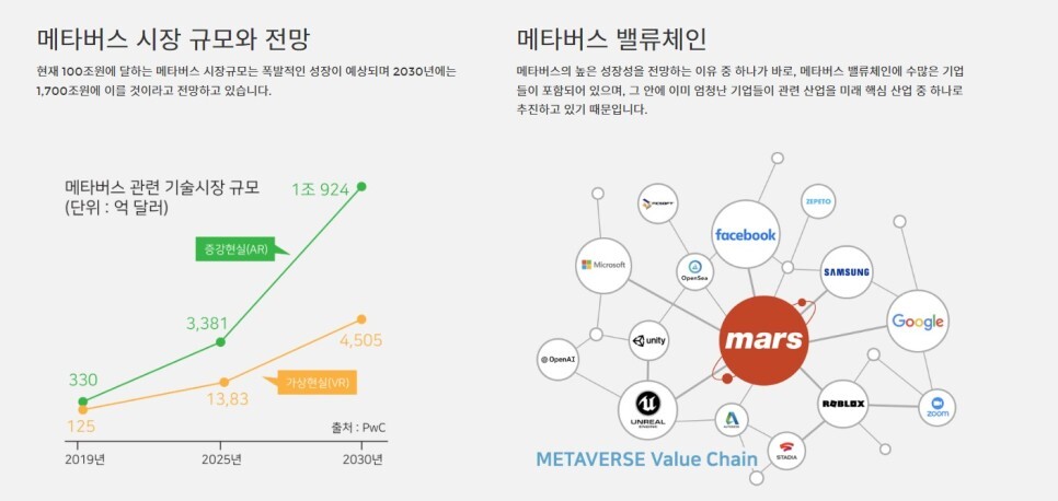 메타버스 시장 규모와 전망, 메타버스 밸류체인 등 정말 대단한 시장규모와 전망입니다.
