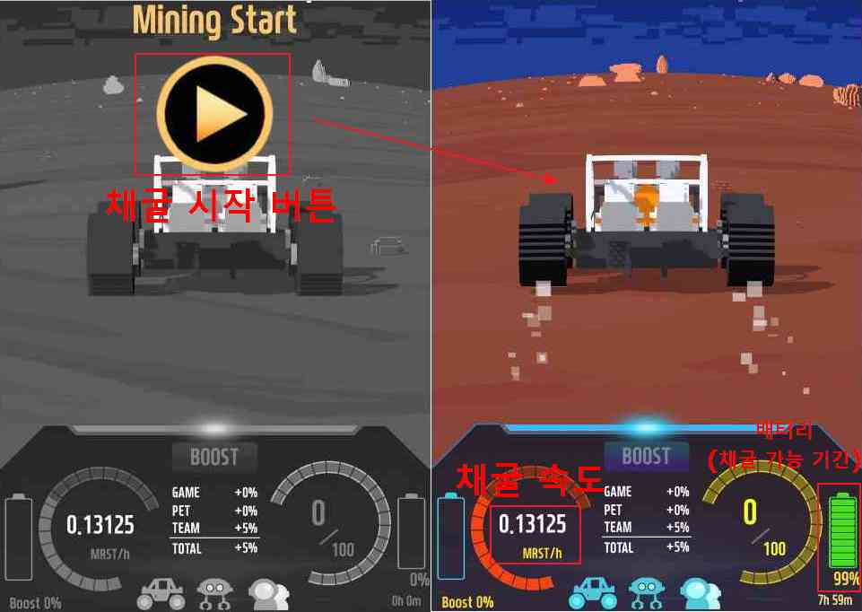 추후 업데이트를 통해 NFT 아이템인 Pet과 Buggy Car를 구매 또는 획득하여 장착하면 최대 70%까지도 채굴 속도 향상이 가능하다. 자세한 내용은 백서에서 확인 가능하다.