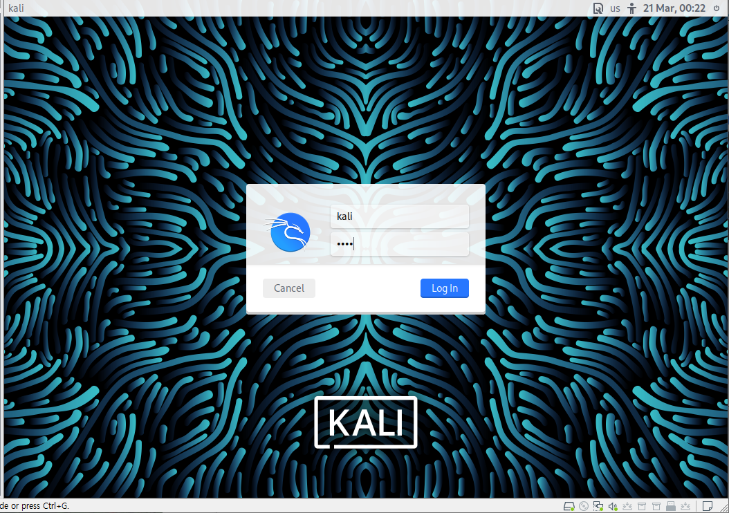 6. 리눅스 로그인 ( id : kali, password : kali )