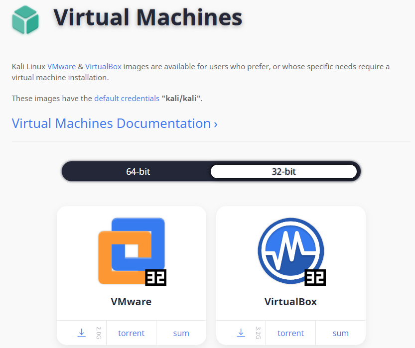 ○ 칼리 리눅스 VirtualBox용 32 비트 다운로드