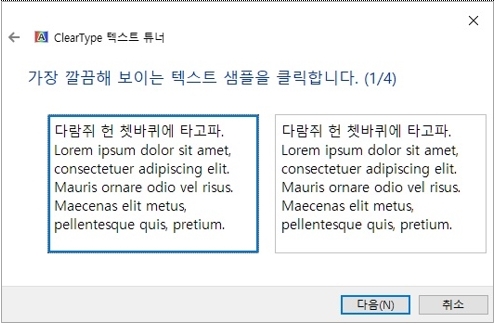 3. 내용 확인 후 '다음'을 클릭 합니다 (Clear Type 사용 기본 체크됨)