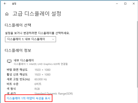 ▶ 디스플레이 어댑터 속성을 표시 선택 화면