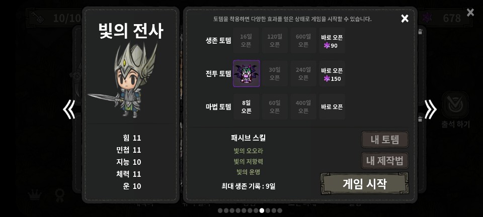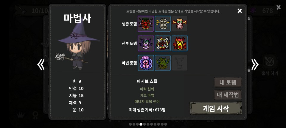 - 지능에 스탯을 다 꼬라박고 시작부터 마법 하나를 가지고 있어 초반이 매우 강하다.