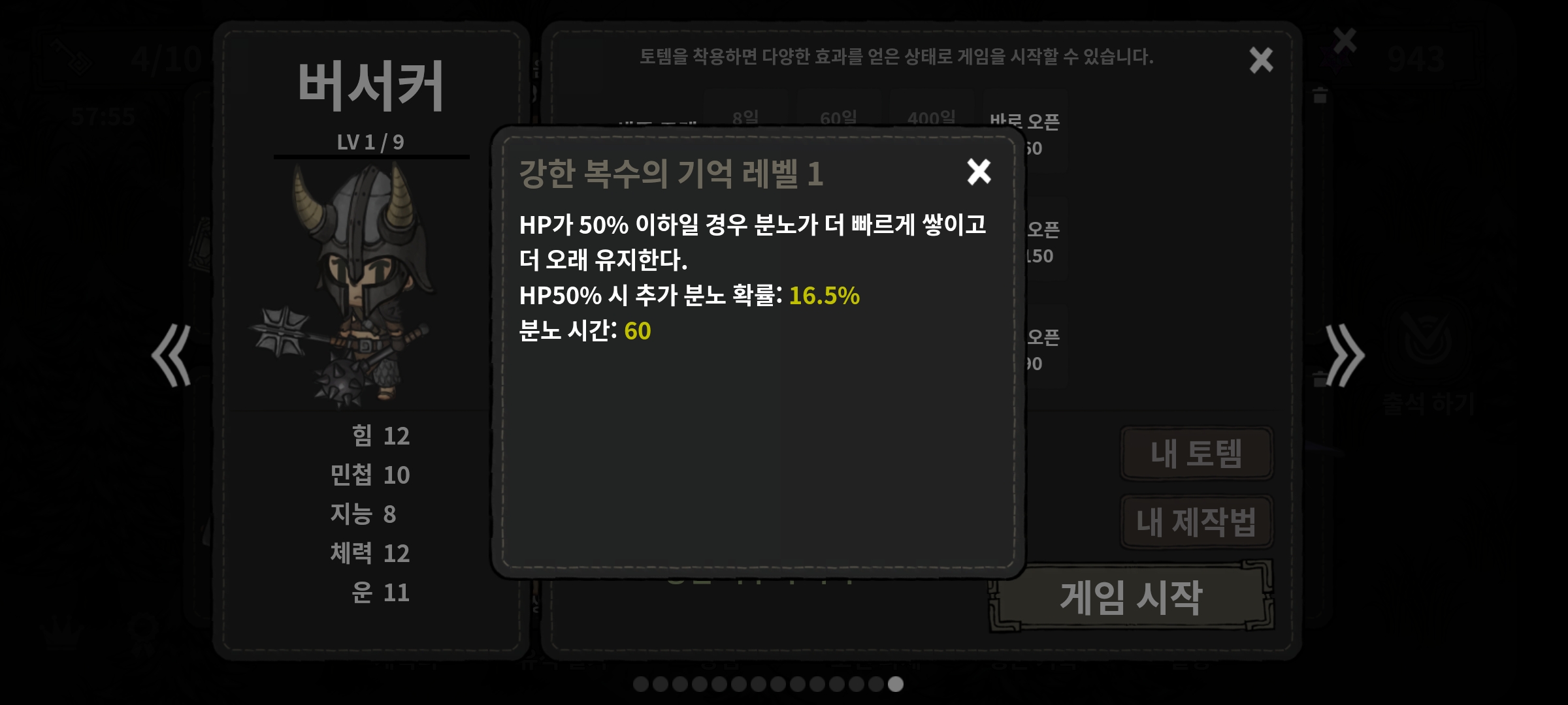 - HP50%시 추가 분노 확률: 16.5%