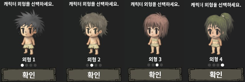 기본 캐릭터는 외형1 캐릭터 이며, 외형2부터는 특정 엔딩을 보아야 외형을 선택할 수 있습니다. 외형 2부터 얻는 방법은 아래 링크를 참고하세요.