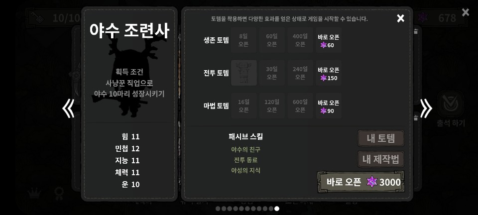 ★ 획득 조건: 사냥꾼 직업으로 야수 10마리 성장시키기