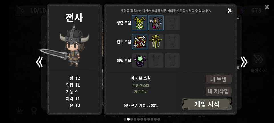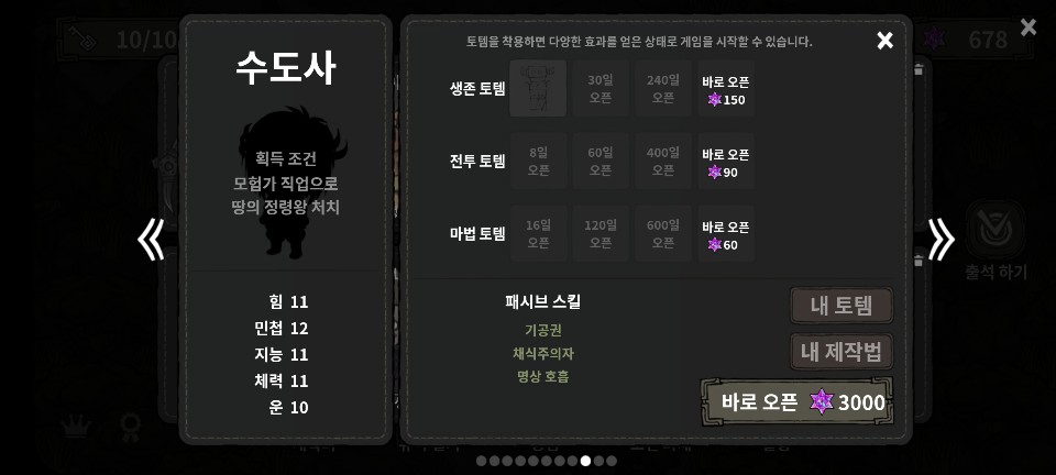 - 방어구 숙련도를 1로 시작한다.