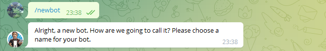 2. "/newbot"을 입력하면 bot 이름을 입력하라고 나옵니다.