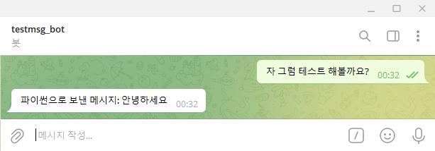 await send_msg('파이썬으로 보낸 메시지:안녕하세요')