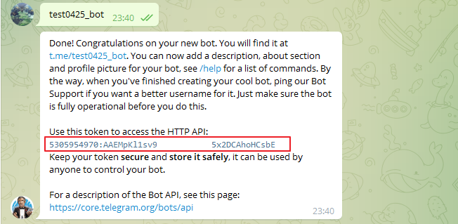 - 알고 있는 텔레그램 토큰값과, id를 이용하여 이제 메시지를 보낼 수 있습니다.