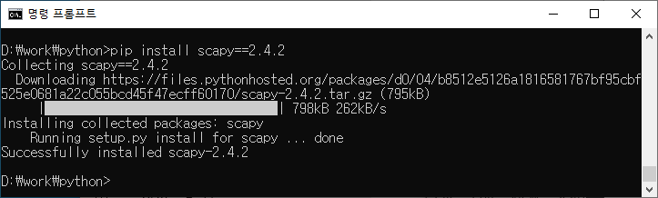 패킷 분석하는 scapy 최신 버전은 2.4.3 인테 2.4.2 버전을 설치할때.