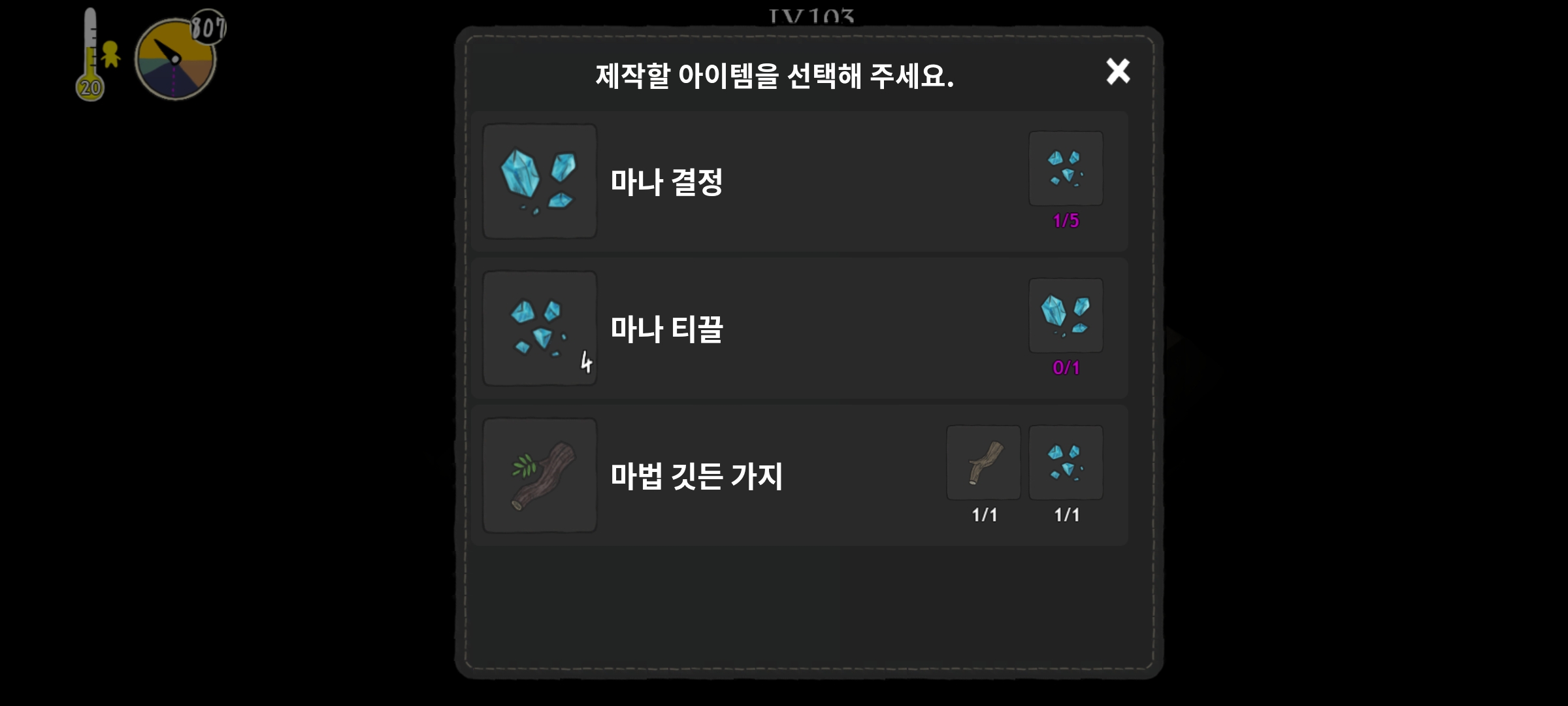 재료 = 이상한 문양의 지도 조각 + 마법 깃든 가지
