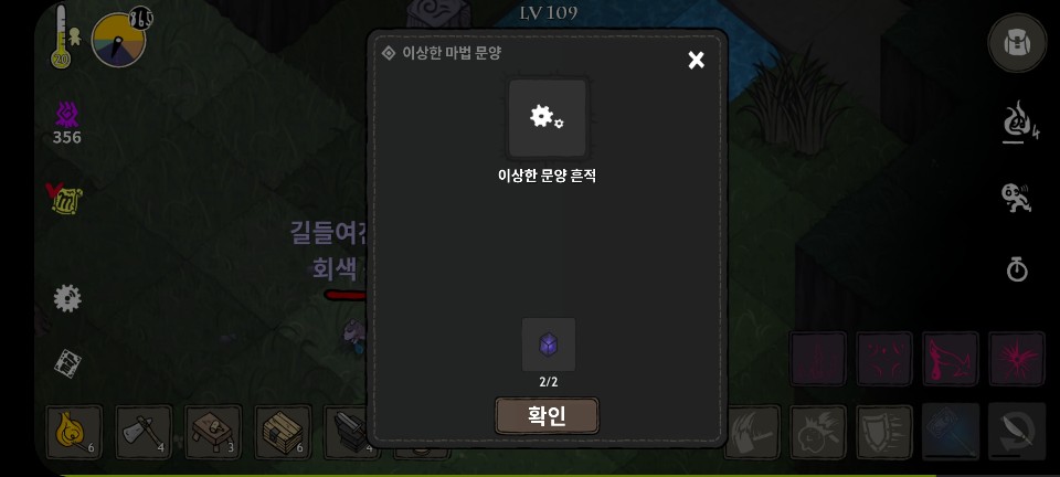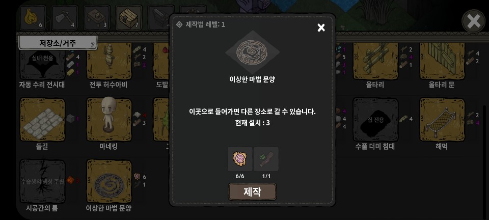 저장소/거주 메뉴 하단의 '이상한 마법 문양'을 신비한거석 주변에 설치