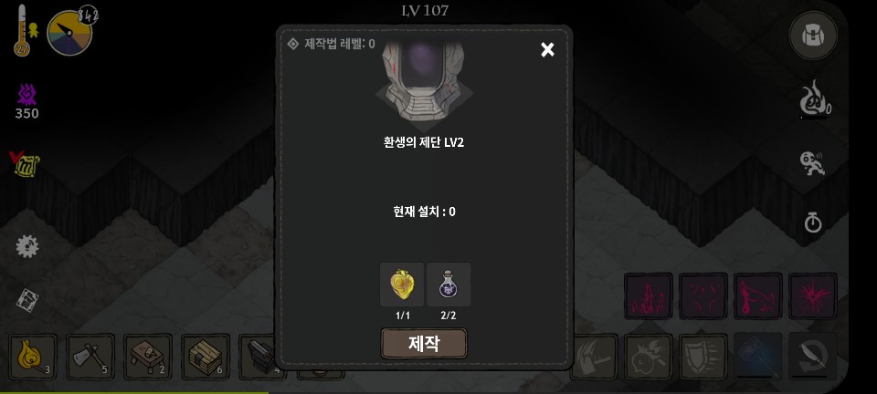 1단계 재료 : 석재 3개, 통나무 5개, 오염된 피 2개, 어둠의 물약 1개