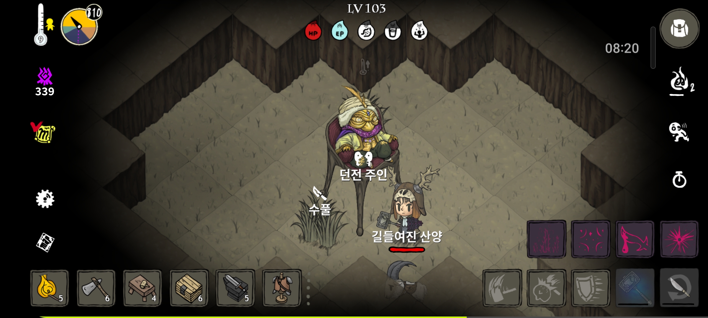 보스의 피통이 크기에 광역 마법을 사용하거나, 요정부터 잡고, 보스를 잡는것을 추천합니다.