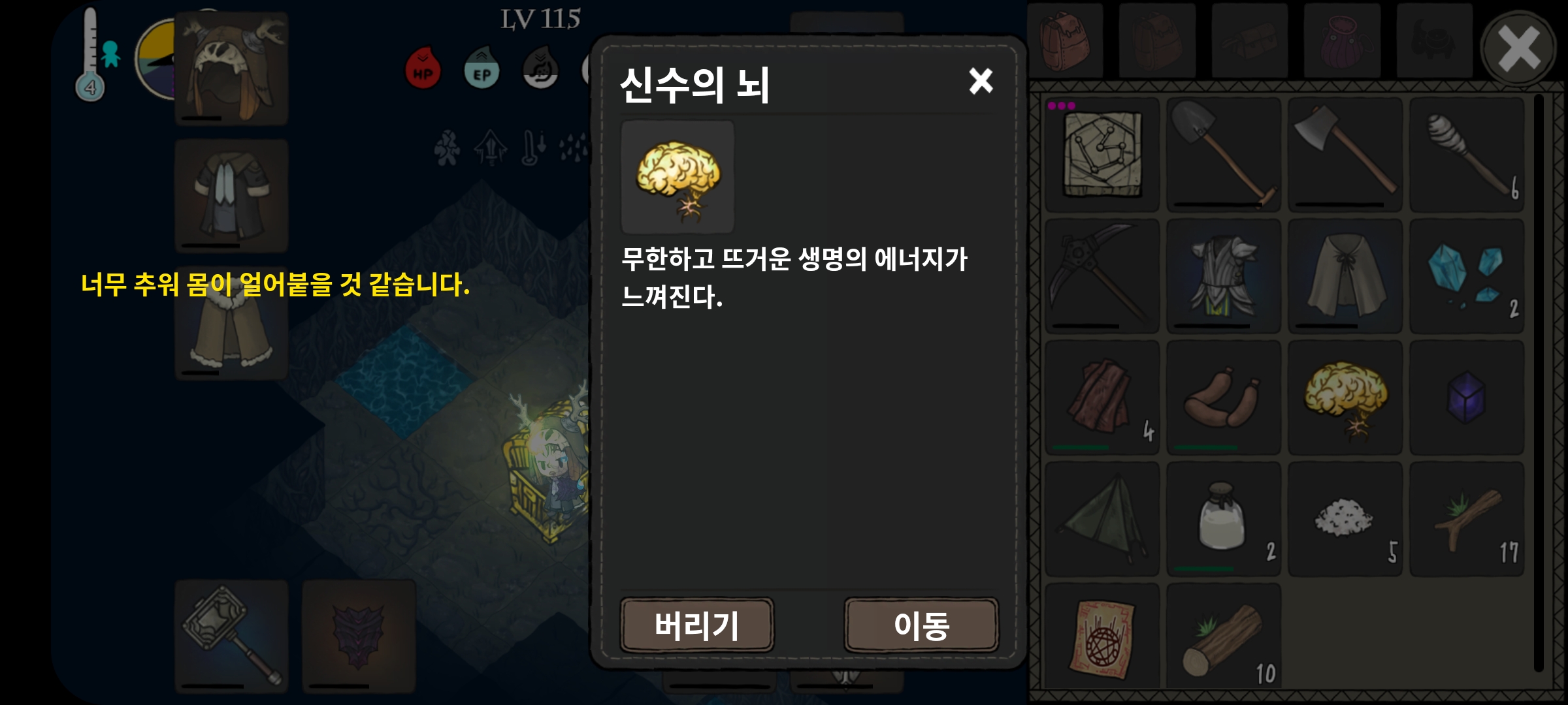 - 체온 조절 아이템(따뜻한 물약, 차가운 물약 등)