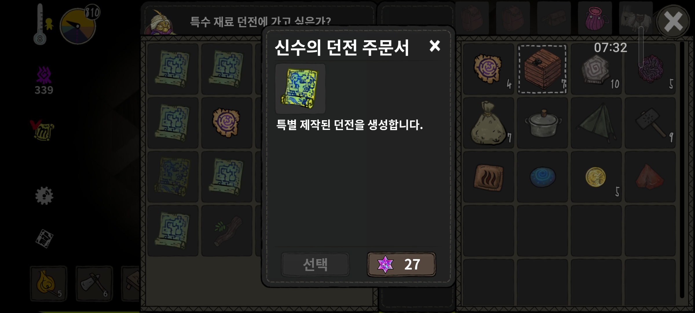 포털 이동 재료: 신수의 던전주문서 + 재료(3가지 재료 랜덤)