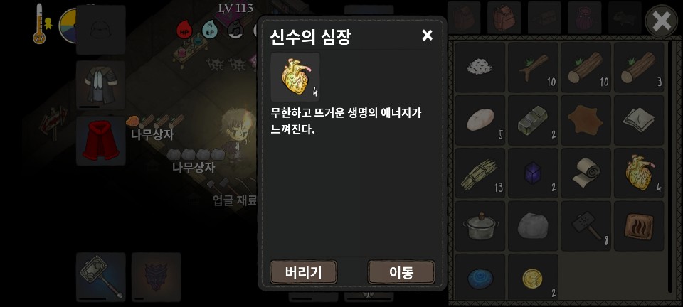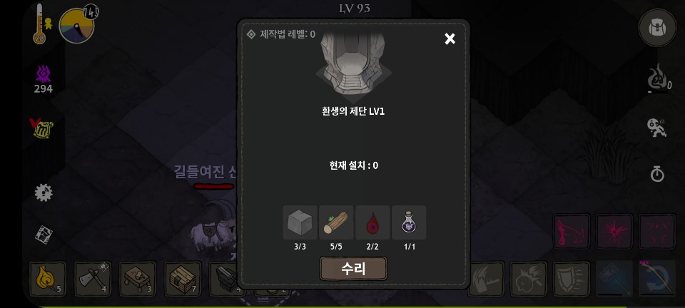 3단계 업그레이드 재료 : 신수의 심장, 뇌 각 1개, 어둠의물약 3개