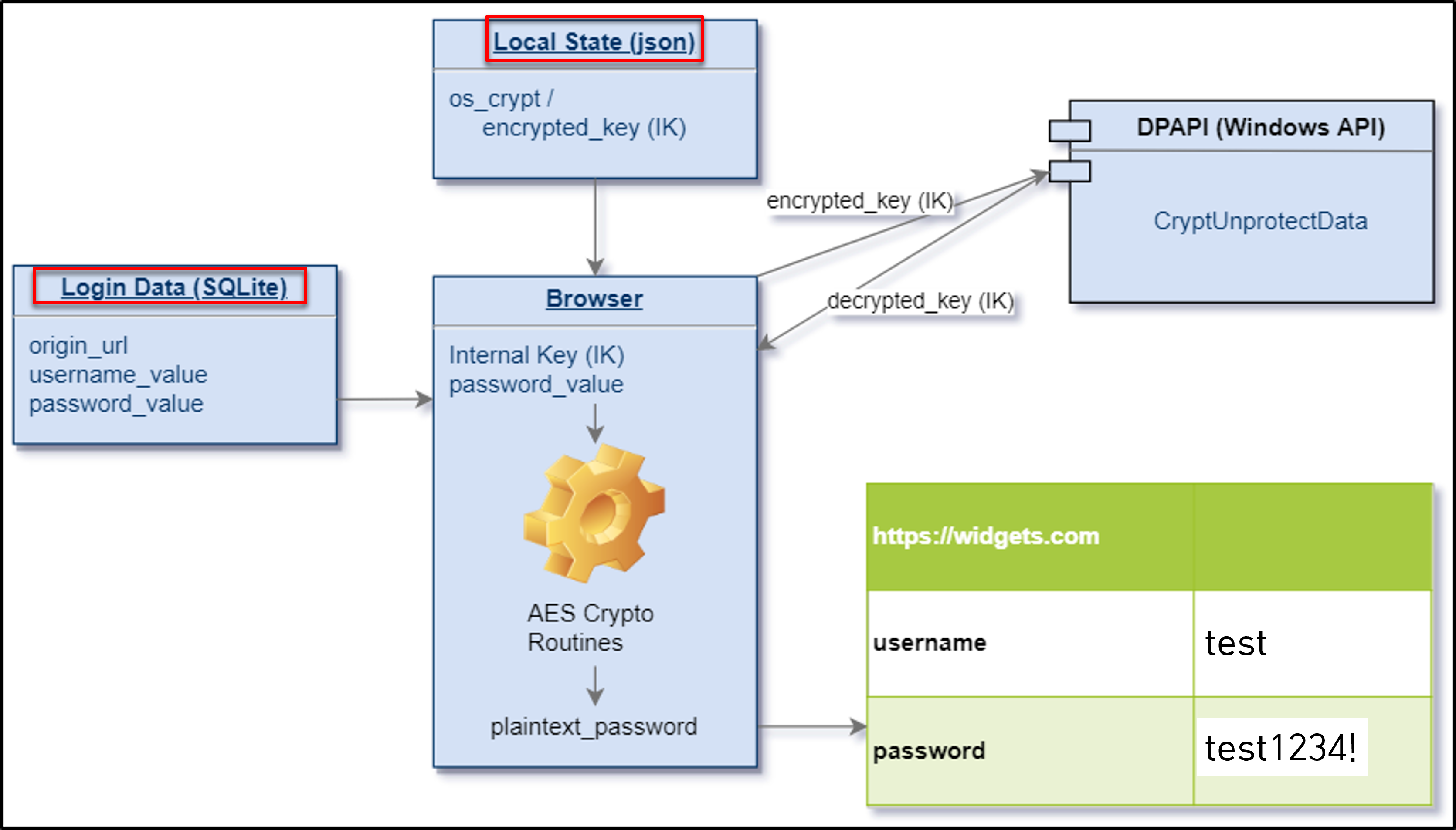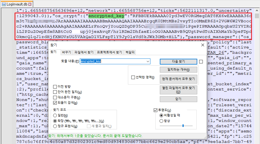 - 암호화 키는 “%USERPROFILE%\AppData\Google\Chrome\User Data\Local State” 파일에 저장됨
